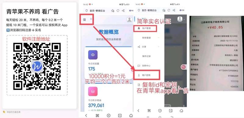 正文 【青苹果纯】简单无插件看广告赚米,每天提每天到米! k112233 V评论者 /2026-01-13 /0 评论 /9 阅读 0113 首码上线青苹果,这是一款无需养机的简单看广告项目!已亲测提现到账!大致玩法:不用养机,一个广告0.2固定的收益,建议用2个手机看!(广告不乱跳),也就是看完4块钱!青苹果,看广告,一个广告0.2元,(多机多号,多实名)日入几十米!不需要养机,单机每天看20个广告上限=4元,积分每天晚上12点自动到余额12元起提,1号2机一ip,一个密钥可以在两个安卓手机的上看(无插件一会就看完)最强变现推荐!项目对接:wsws5500。 。项目对接:wsws5500 -- 展开阅读全文 --