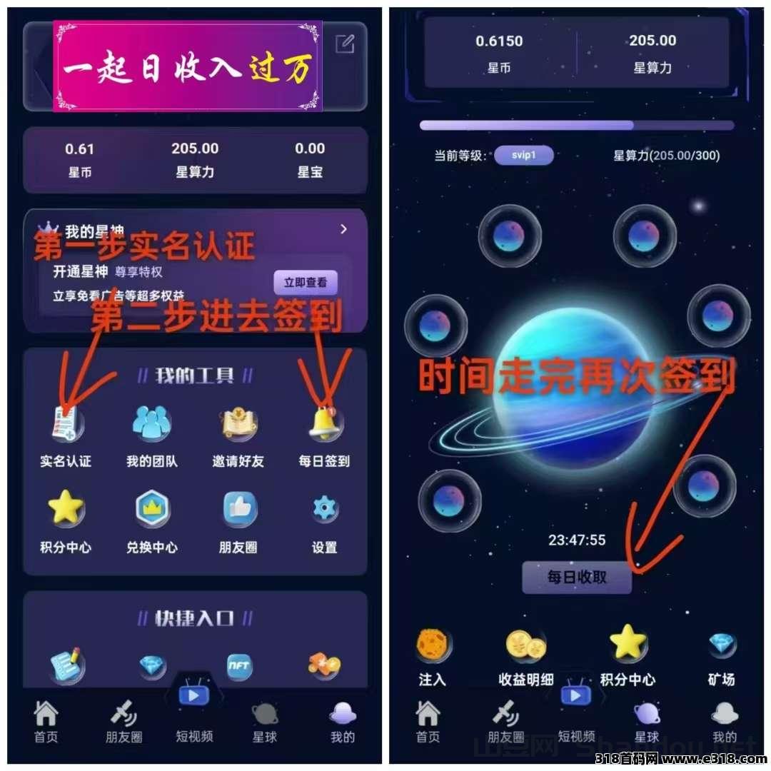 正文 《一个星星》 首码刚出 可以零撸 (一个圈圈+卷轴+爬墙玩法) admin V管理员 /2026-01-04 /0 评论 /13 阅读 0104 《一个星星》刚刚出来的首码。玩法多种多样,0撸,来者必赚23号开放交易,现在先推广搞算力简单实名zfb授权就行,无费用,每天一分钟签到收取。实名认证即送200星算力,永久每天产出0.6币。算力越多每天释放星币越多推广1人奖励5星算力星币开盘2元,每天涨2分。还没上车的速度的来卖出没有限制不用复投,天天可以变现秒卖出星星阶梯+搬砖+算力矿池+NFT+星神五大核心玩法APP自带官方群 -- 展开阅读全文 --